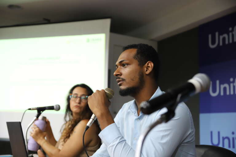 A programação integra ações da Supesp para ampliar o debate em torno do crime de racismo, formas de enfrentamento e prevenção a partir da conscientização do problema e sua realidade sociopolítica e cultural. A palestra, uma parceria entre a Coordenação do Curso de Jornalismo da Universidade de Fortaleza (Unifor) e a Supesp, foi ministrada pelos assessores da Diretoria de Pesquisa e Avaliação de Políticas de Segurança Pública (Dipas) da superintendência, Paula Vieira e Daniel Rocha.