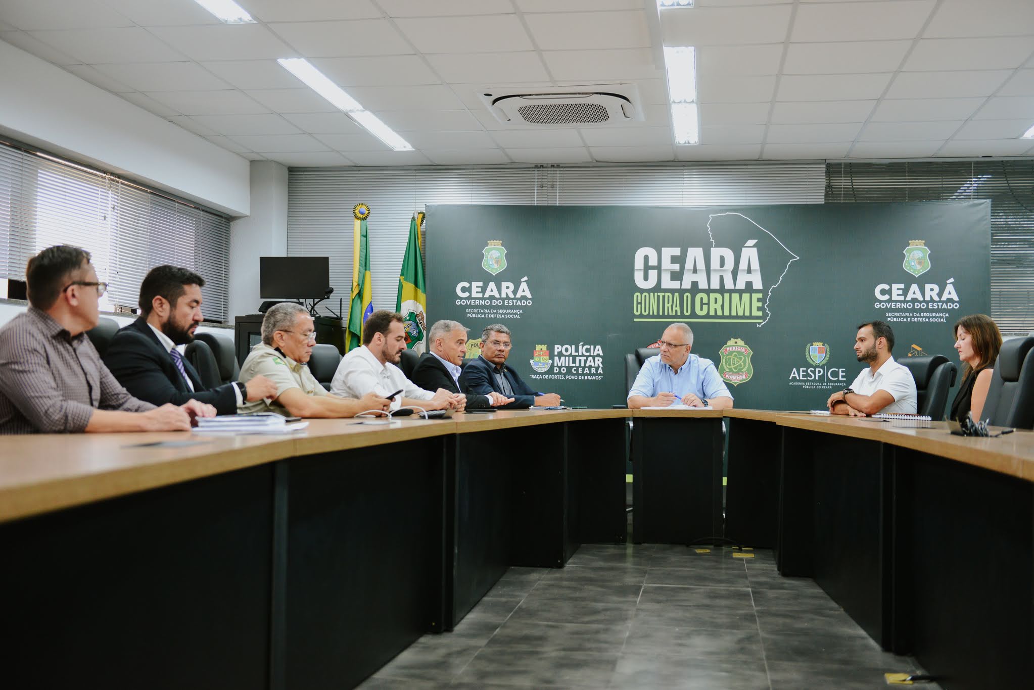 Além do secretário da SSPDS, Roberto Sá, participaram: o secretário-executivo de Ações Integradas e Estratégicas, Sérgio Pereira dos Santos; o coordenador da Coordenadoria Geral de Operações (CGO) da Polícia Militar do Ceará (PMCE), coronel Kilderlan de Sousa; o diretor da Coordenadoria de Inteligência (Coin) da SSPDS, delegado Nelson Pimentel; o diretor do Departamento de Polícia Judiciária do Interior Norte (DPJI Norte) da Polícia Civil do Estado do Ceará (PCCE), delegado Marcos Aurélio; o chefe de operações da Coordenadoria Integrada de Planejamento Operacional (Copol/SSPDS), o Oficial Investigador de Polícia, Yuri Brandão, e o chefe de gabinete da SSPDS, coronel PMCE Cristiano Lins;