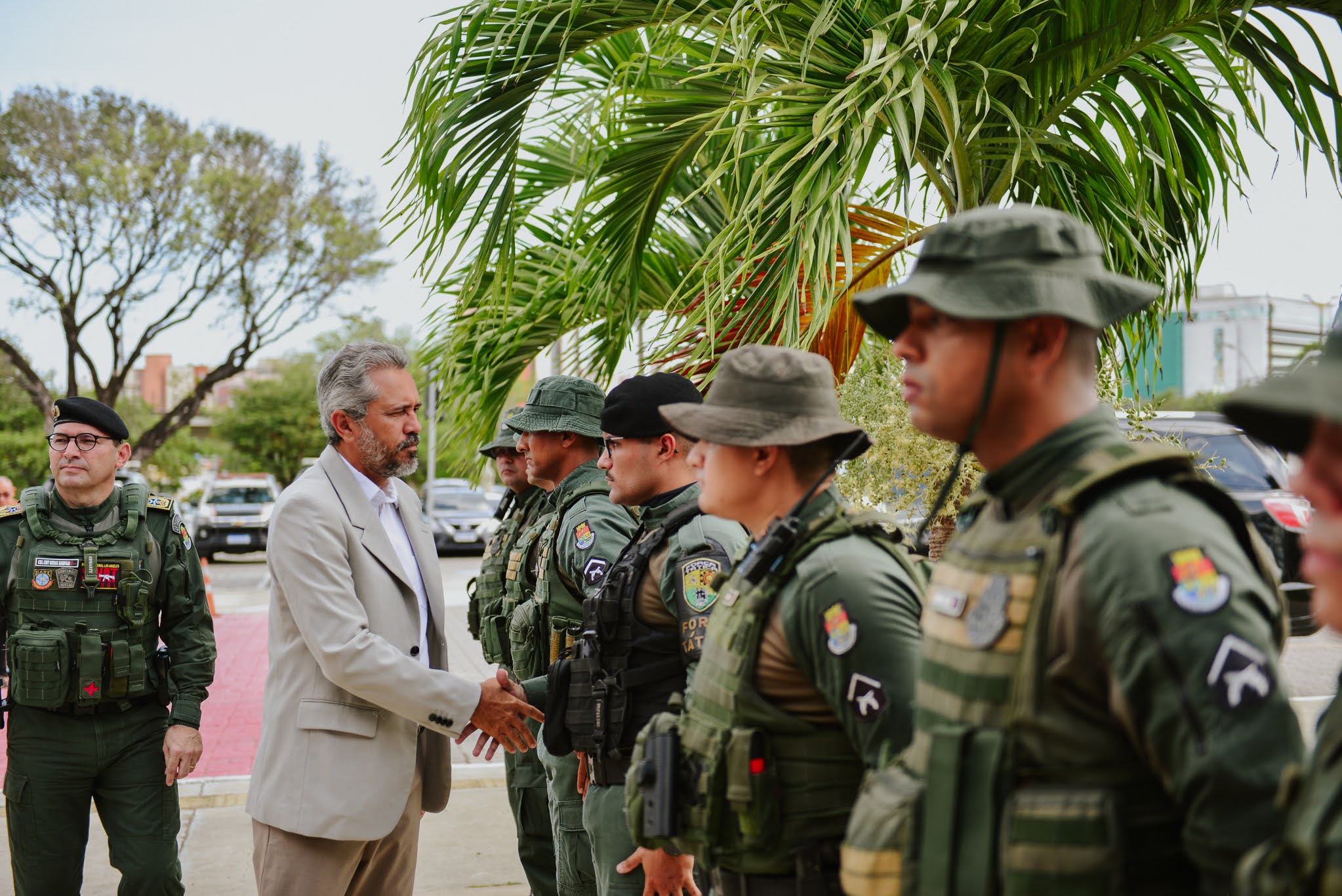 O governador Elmano aproveitou para agradecer à polícia pelo empenho que dá resultado, ao citar o enfrentamento de criminosos nesta segunda-feira (29), em São João do Jaguaribe. O chefe do Executivo Estadual afirmou que a tropa está amparada para agir da maneira que se fizer necessário, mas sempre dentro da legalidade.