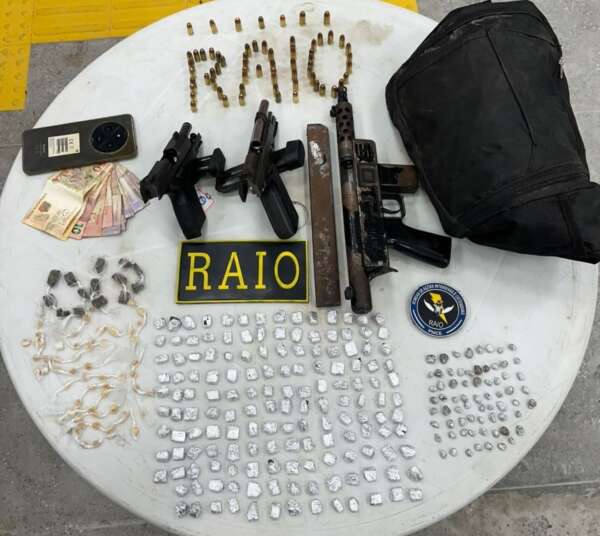 Um suspeito foi preso em flagrante, nessa segunda-feira (5), por tráfico de drogas e porte ilegal de arma de fogo em Barroquinha, Área Integrada de Segurança 14 (AIS 14) do estado. A captura foi realizada pela Companhia de Rondas de Ações Intensivas e Ostensivas (CPRaio) da Polícia Militar do Ceará (PMCE). O homem, de 26 anos, possuía uma metralhadora artesanal e duas pistolas. Ele foi apresentado em uma delegacia da Polícia Civil do Estado do Ceará (PCCE) e colocado à disposição da Justiça.