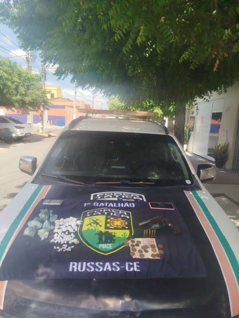A Polícia Militar do Ceará (PMCE), por meio de uma equipe da Força Tática do 1º Batalhão de Polícia Militar (1º BPM), apreendeu entorpecentes e uma arma de fogo no município de Russas – Área Integrada de Segurança 18 (AIS 18) do Ceará. A ação ocorreu após uma denúncia anônima sobre tráfico de drogas e posse ilegal de arma em uma residência da cidade.