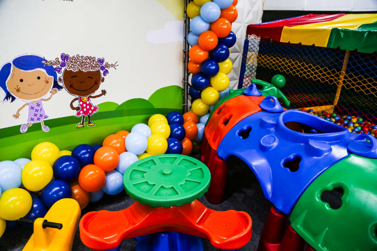 A brinquedocreche conta com casinha para brincadeira, escorregador, tabela de basquete, túnel lúdico, gangorra, piscina com bolinhas e brinquedo gira gira. O equipamento também recebe livros e jogos pedagógicos inclusivos.