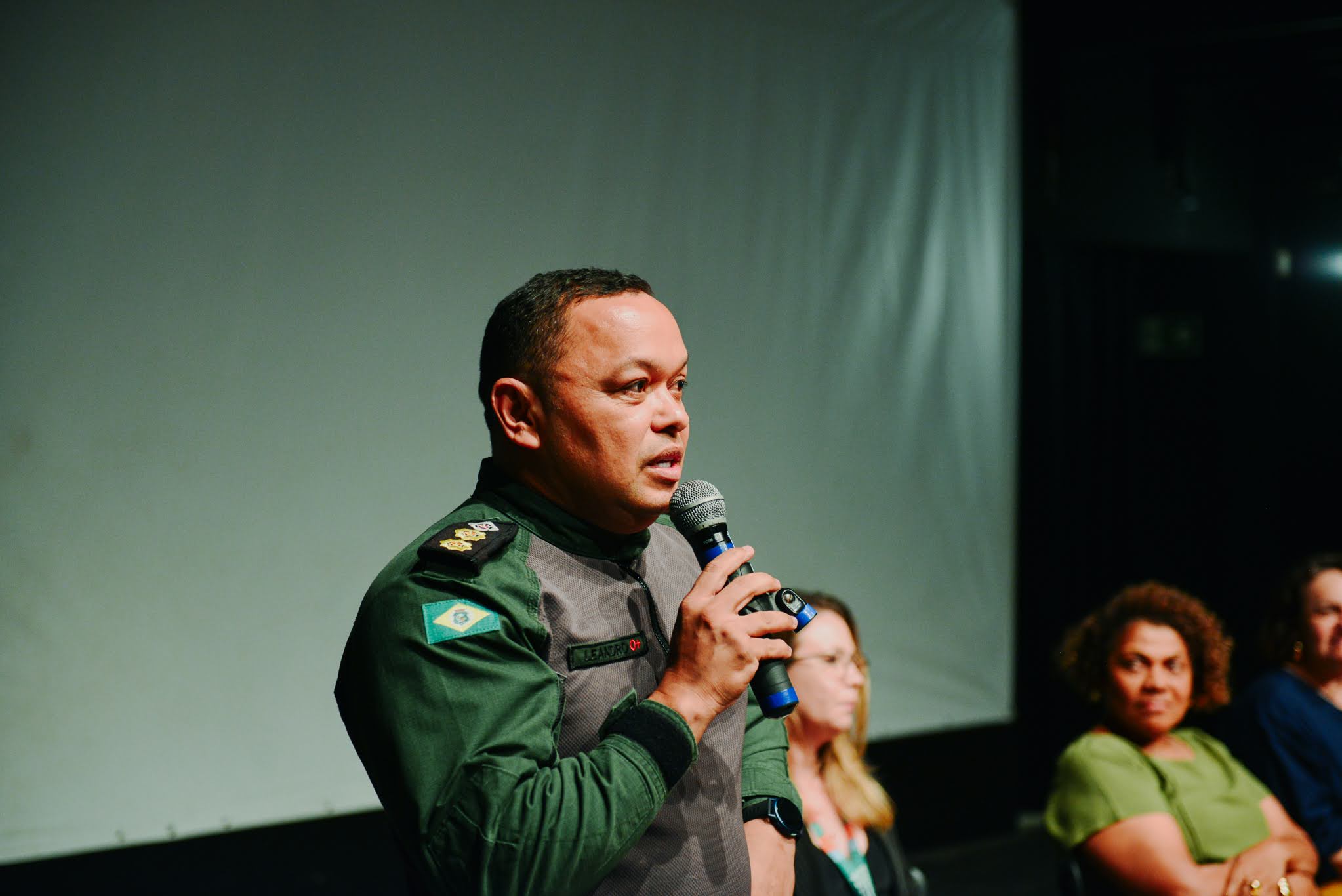 Participaram da programação no Centro Cultural Bom Jardim, em Fortaleza: a superintendente da Supesp/SSPDS, Juliana Barroso; o tenente-coronel comandante do Comando de Prevenção e Apoio às Comunidades (Copac) da Polícia Militar do Ceará (PMCE), Leandro Ribeiro; a orientadora da Célula de Grupos Vulneráveis da Coordenadoria de Defesa Social (Codes/SSPDS), Fabrine Bastos; a secretária de Igualdade Racial, Zelma Madeira; entre outros.