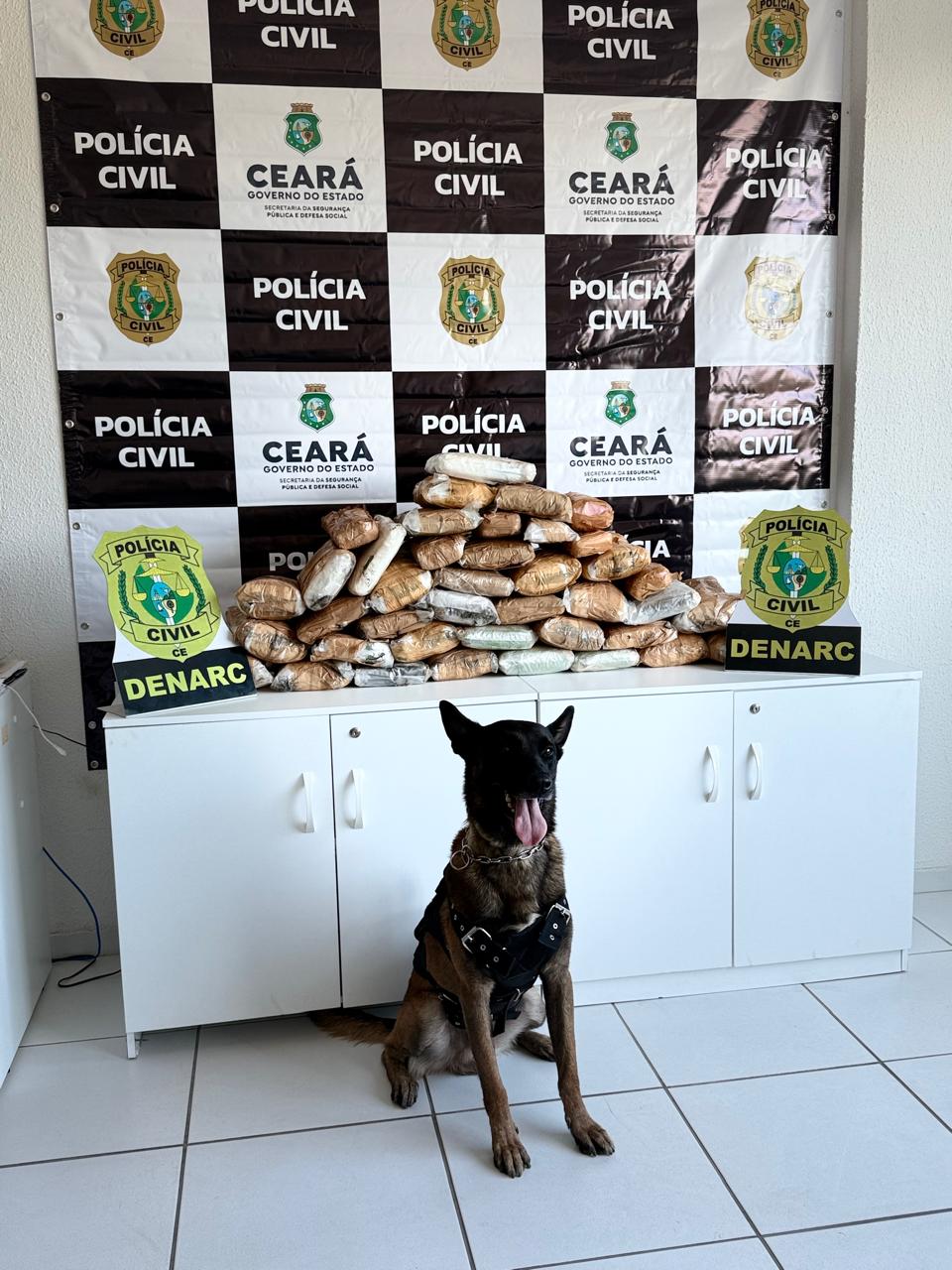 Com informações obtidas após um trabalho de inteligência, coordenado pela Delegacia de Narcóticos (Denarc), os oficiais investigadores tomaram conhecimento de que um indivíduo, de 32 anos, estaria transportando uma grande quantidade de materiais ilícitos. Com o endereço exato do local, os policiais tiveram êxito na prisão e, com o auxílio dos cães farejadores da PCCE, os policiais encontraram um vasto material em posse do suspeito.