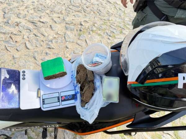 Ao entrarem no imóvel, os policiais encontraram diversas malas. Dentro delas, havia uma peça de maconha e outras porções da droga, já fracionadas. Também foram apreendidos uma balança de precisão, uma quantia em dinheiro, dois aparelhos celulares, uma munição de calibre 38 e um documento de identidade.