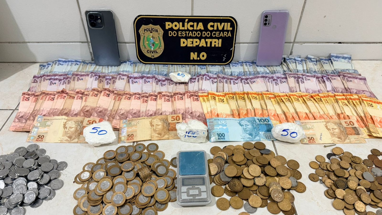 Durante a ação, foram apreendidas drogas, uma balança, além de dois aparelhos celulares e dinheiro em espécie, itens que comprovam a materialidade do crime. O suspeito foi autuado em flagrante por tráfico de drogas e conduzido à unidade policial responsável pelo caso. Ele segue à disposição da Justiça.