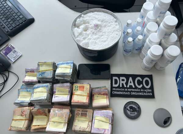 Na ação policial, foram cumpridos sete mandados de prisão preventiva em desfavor de indivíduos em liberdade. Destes, um homem, de 36 anos, que já responde por tráfico de drogas, foi autuado em flagrante pelo mesmo crime. Com ele, foram apreendidos quase 1,5 kg de drogas, 18 aparelhos celulares e uma quantia de dinheiro em espécie totalizando mais de 24 mil reais. Uma mulher, identificada como companheira do alvo de 36 anos, também foi autuada por tráfico de drogas.