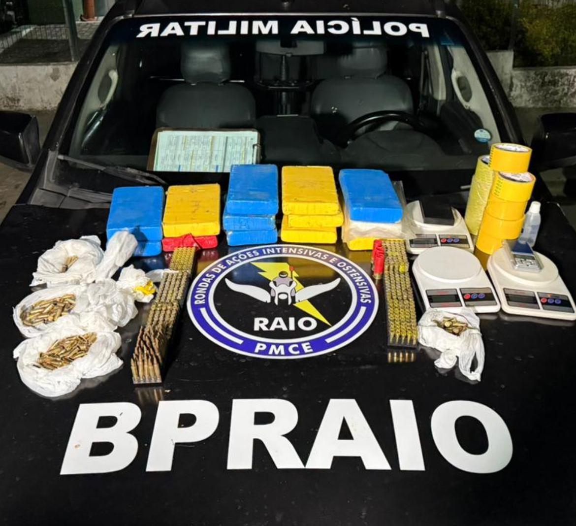 Em janeiro deste ano, foram apreendidos pelo CPRaio: 13 kg de cocaína; cinco balanças de precisão e 486 munições de diversos calibres, incluindo .40, 9mm, 5.56, calibre 12, .38 e .380, no bairro Paupina (AIS 16), em Fortaleza, foram presos em flagrante pelo CPRaio.
