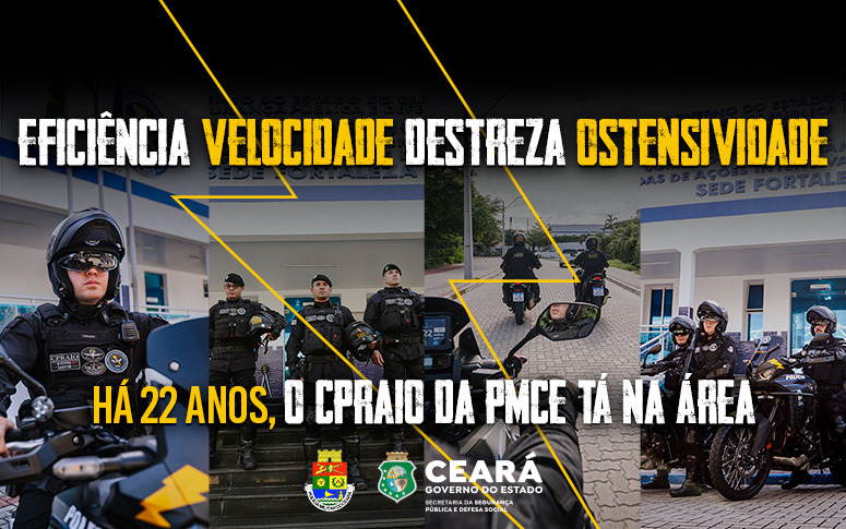 Nesta quinta-feira (12), o maior esquadrão de motopatrulhamento tático em unidade de comando do Brasil, completa 22 anos. Em alusão a data, a Secretaria da Segurança Pública e Defesa Social (SSPDS), homenageia e parabeniza todos os agentes de segurança que compõem o Comando de Policiamento de Ronda de Ações Intensiva e Ostensivas (CPRaio) e prestam excelentes serviços à sociedade cearense.