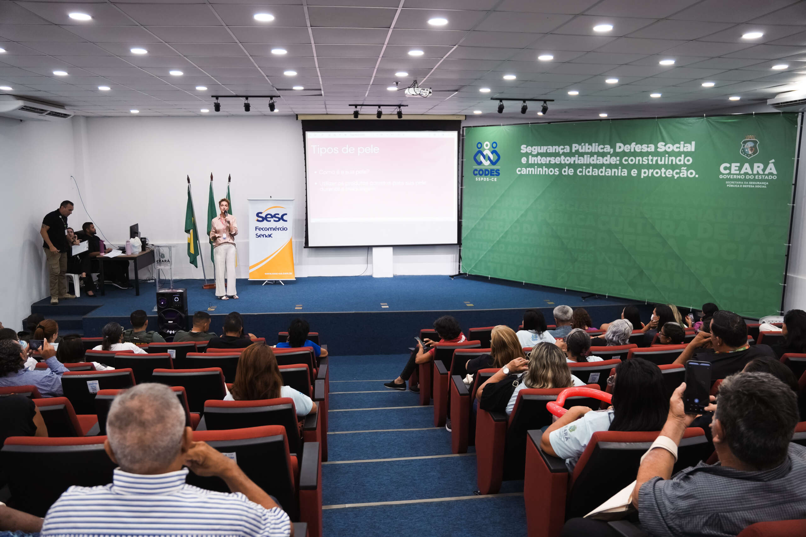 O momento também contou com momentos de descontração e humor, além de uma programação especial dedicada às mulheres, em alusão ao mês de março, planejada pela pela Célula de Proteção da Mulher da Codes com apoio do Sistema Fecomércio. Na ocasião, houve momento de valorização e cuidado, com maquiadores e dicas de maquiagem compartilhadas pela maquiadora profissional Raquel de Freitas, docente no Serviço Nacional de Aprendizagem Comercial (Senac); e a palestra “Alimentação Saudável na Promoção da Saúde da Mulher”, promovida pelo Senac.