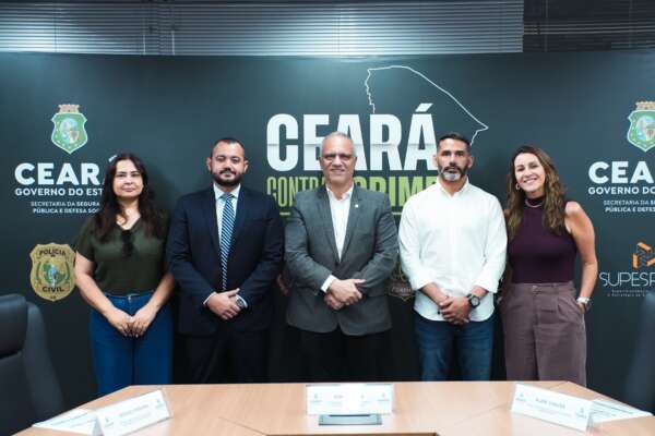 A Coordenadoria Integrada de Operações de Segurança (Ciops), da Secretaria da Segurança Pública e Defesa Social (SSPDS), recebeu, na manhã desta quinta-feira (26), a visita de uma comitiva da Secretaria de Estado da Justiça do Espírito Santo. Os representantes da pasta foram recepcionados pelo secretário da SSPDS, Roberto Sá, e pelo coordenador da Ciops, coronel PMCE Aristóteles Coelho.
