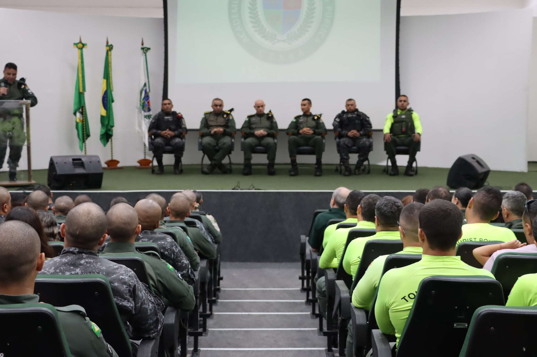 A Academia Estadual de Segurança Pública (Aesp/CE) realizou, nessa terça-feira (31), a solenidade de encerramento do Curso de Policiamento Turístico (CPTUR) e do Curso de Policiamento em Eventos (CPE). O evento destacou o empenho dos profissionais na busca pela especialização e reforçou a parceria com a Polícia Militar do Ceará (PMCE) na promoção da qualificação contínua das forças de segurança.
