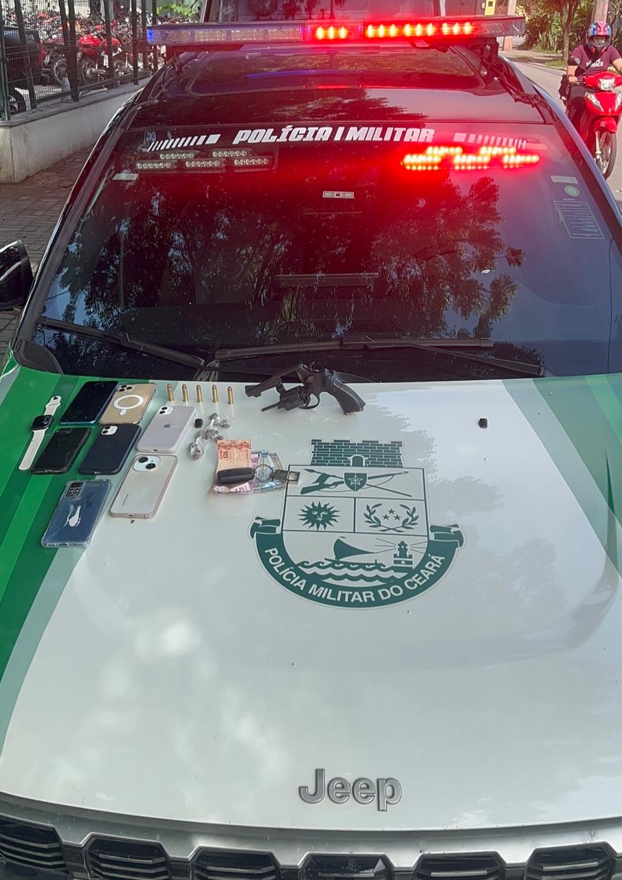 A Polícia Militar do Ceará (PMCE), por meio de equipes do 3º Batalhão de Polícia Militar, apreendeu um revólver calibre .38 com numeração suprimida, cinco munições intactas, 11 papelotes de maconha, além de sete aparelhos celulares e uma quantidade de dinheiro em espécie durante uma ação no bairro Jatobá, em Sobral – Área Integrada de Segurança Pública 3 (AIS 3) do Ceará. Ao todo, 12 pessoas, entre adultos e adolescentes, foram conduzidos para a delegacia.