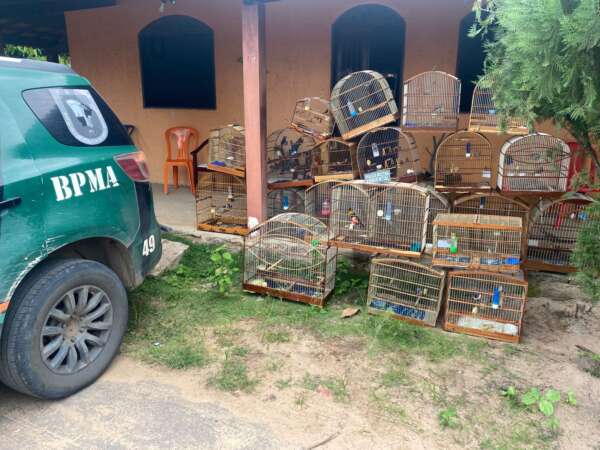 Uma apreensão de 21 aves silvestres foi realizada pela Polícia Militar do Ceará (PMCE), por meio do Batalhão de Polícia de Meio Ambiente (BPMA), na tarde dessa quarta-feira (15), no Sítio Baixio do Muquém, zona rural de Crato – Área Integrada de Segurança Pública 2 (AIS 2) do estado. A ação teve início após denúncia repassada pela Coordenadoria Integrada de Operações de Segurança (Ciops) da Secretaria da Segurança Pública e Defesa Social (SSPDS) indicando a existência de animais silvestres mantidos irregularmente em cativeiro. Na ocasião, um homem também foi detido.