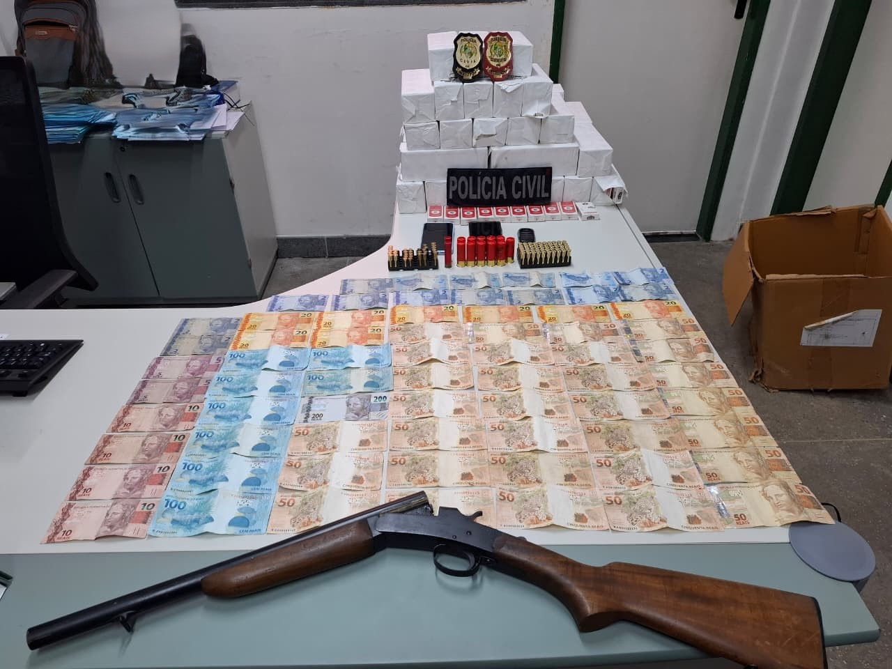 Nomeada “Operação Lignum”, a ofensiva buscou investigar o comércio ilegal de entorpecentes, a lavagem e a ocultação de bens, direitos e valores praticados por integrantes de um grupo criminoso de origem carioca, em Horizonte. Durante o cumprimento dos mandados de busca e apreensão, dois homens e uma mulher foram presos em flagrante por porte e posse ilegal de arma de fogo e contrabando. Com eles, foram apreendidos quase 900 maços de cigarro.